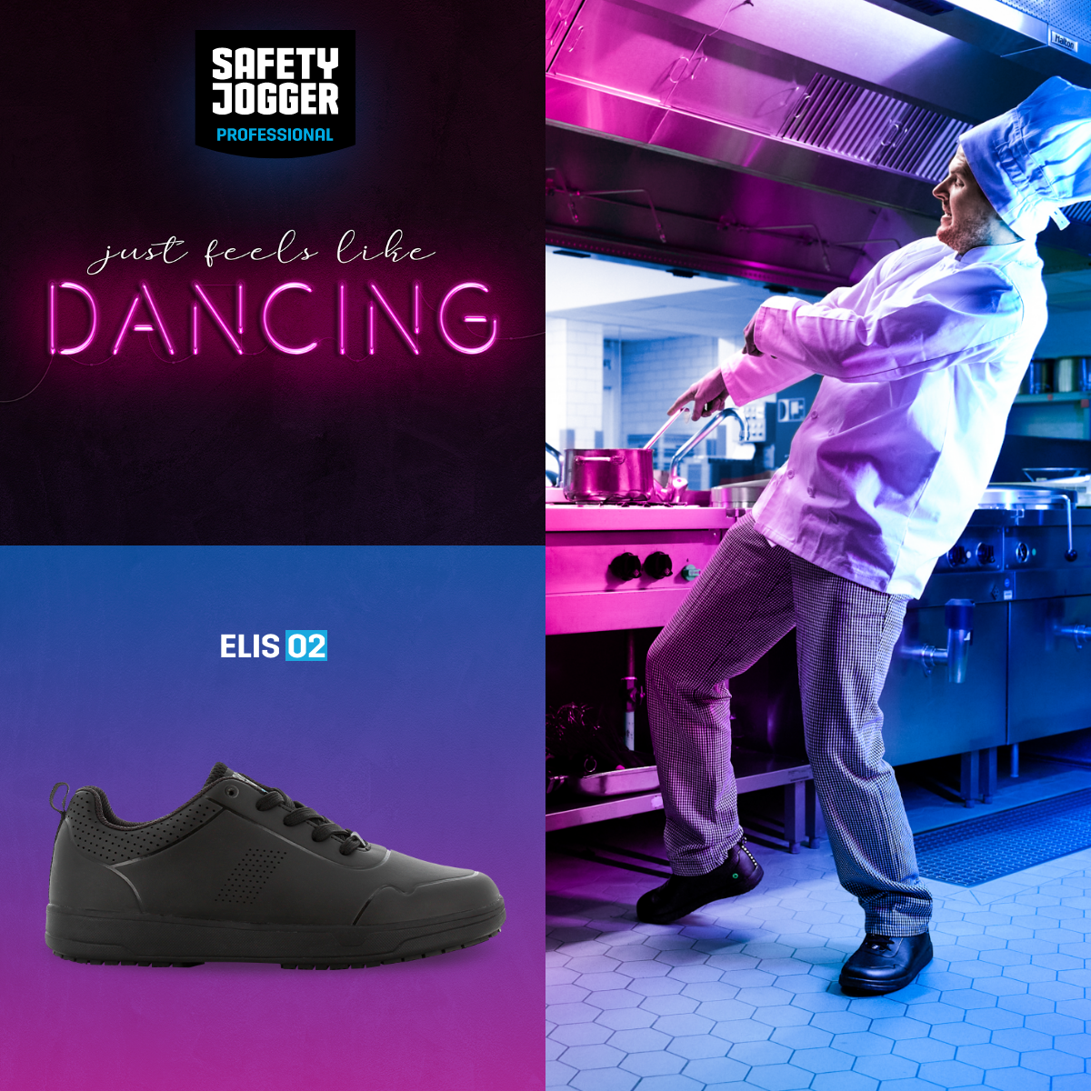 Rutschhemmend, metallfrei, mit atmungsaktivem Mesh – perfekt für Gastro, Reinigung und Pflege.