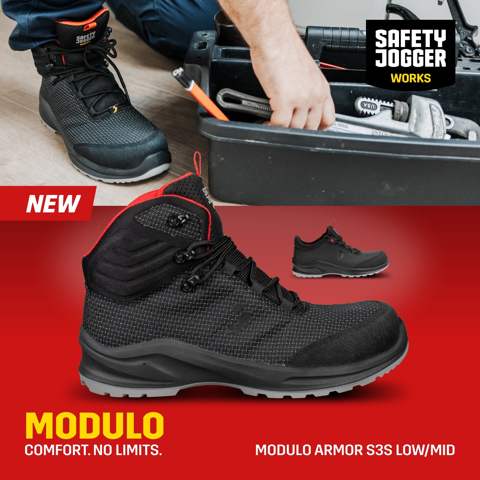 Modulo vereint Schutz, Komfort und Stil: durchtrittsicher, wasserdicht, stoßdämpfend – für alle, die täglich alles geben. Leicht am Fuß, stark im Einsatz.